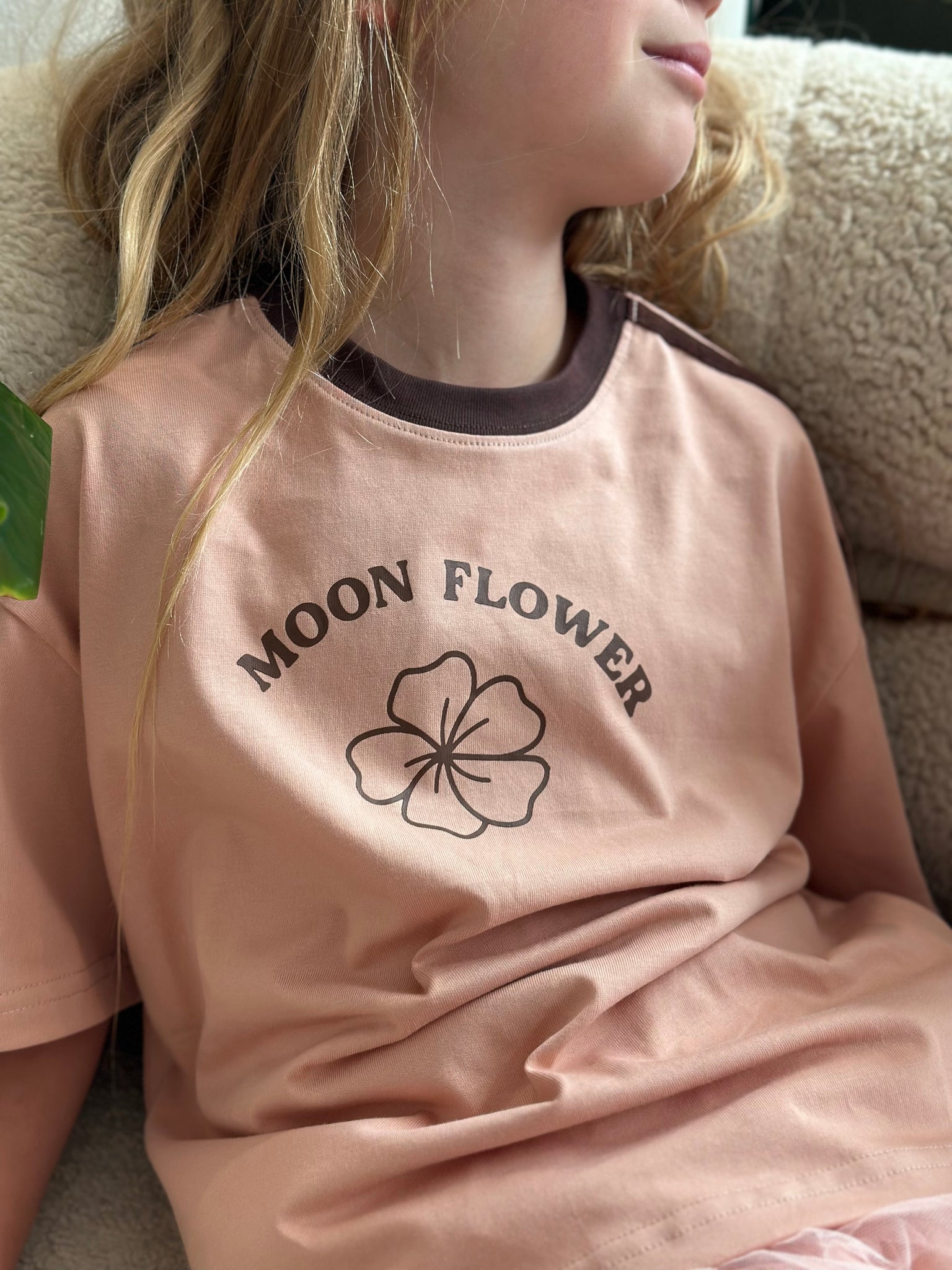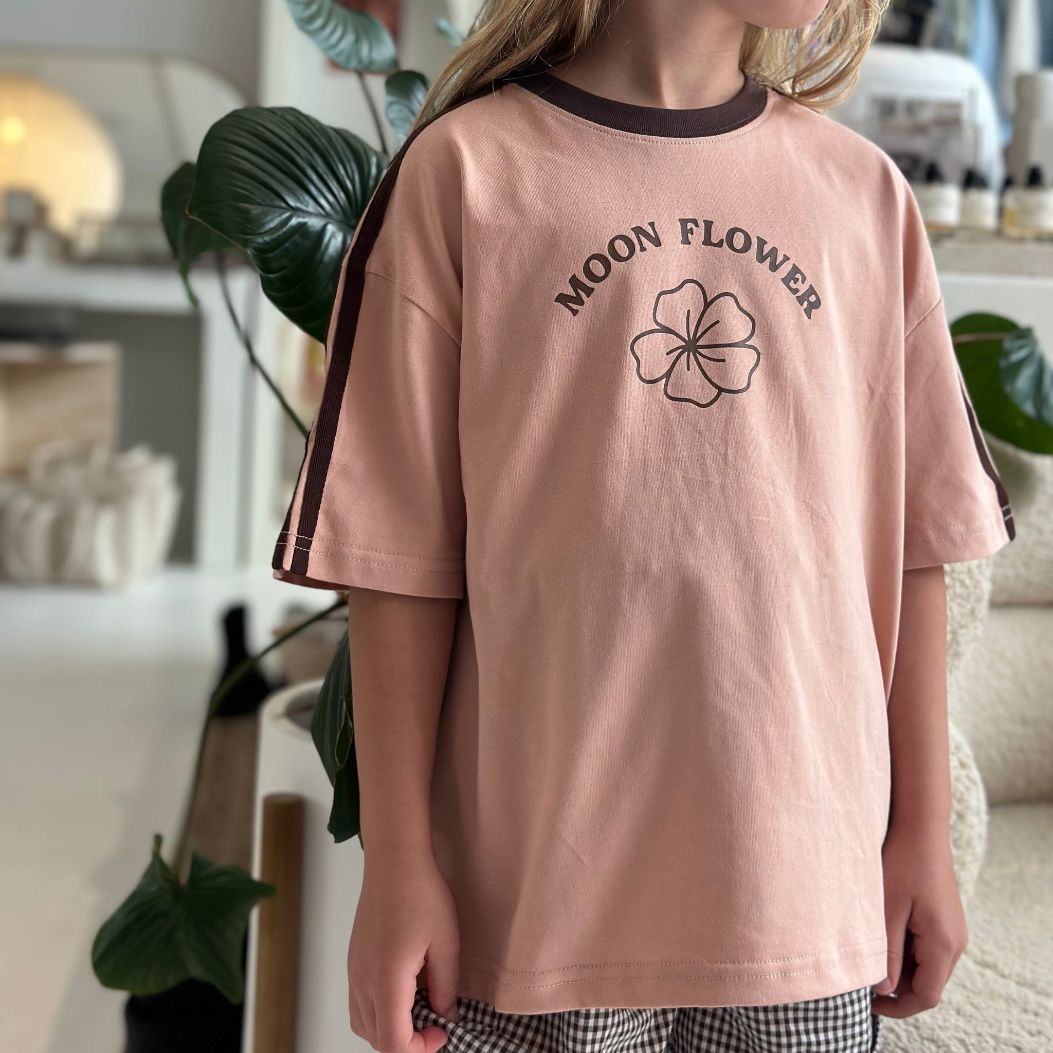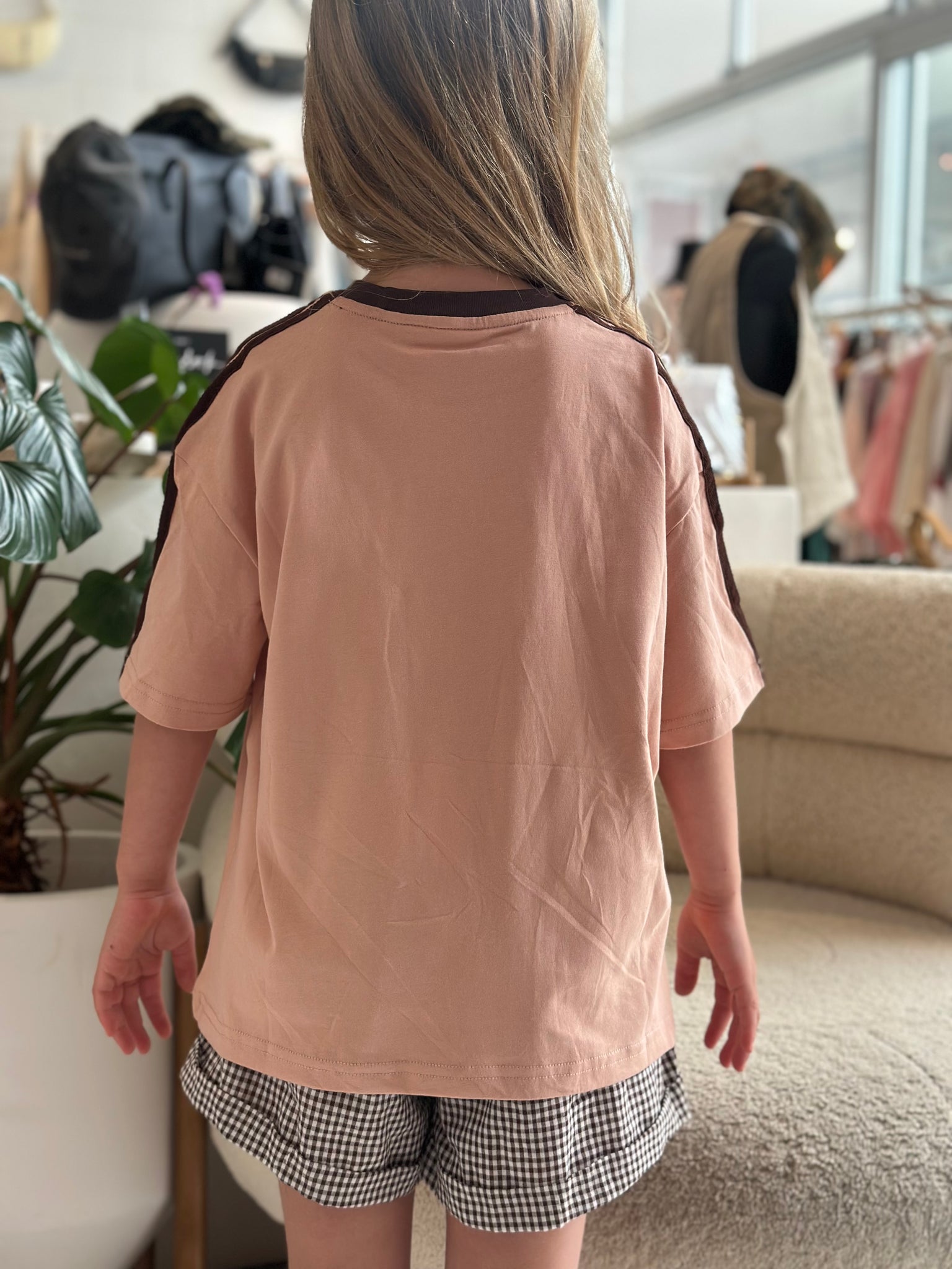 The sweetest tee in the prettiest dusky pink with chocolate contrast stripe details.