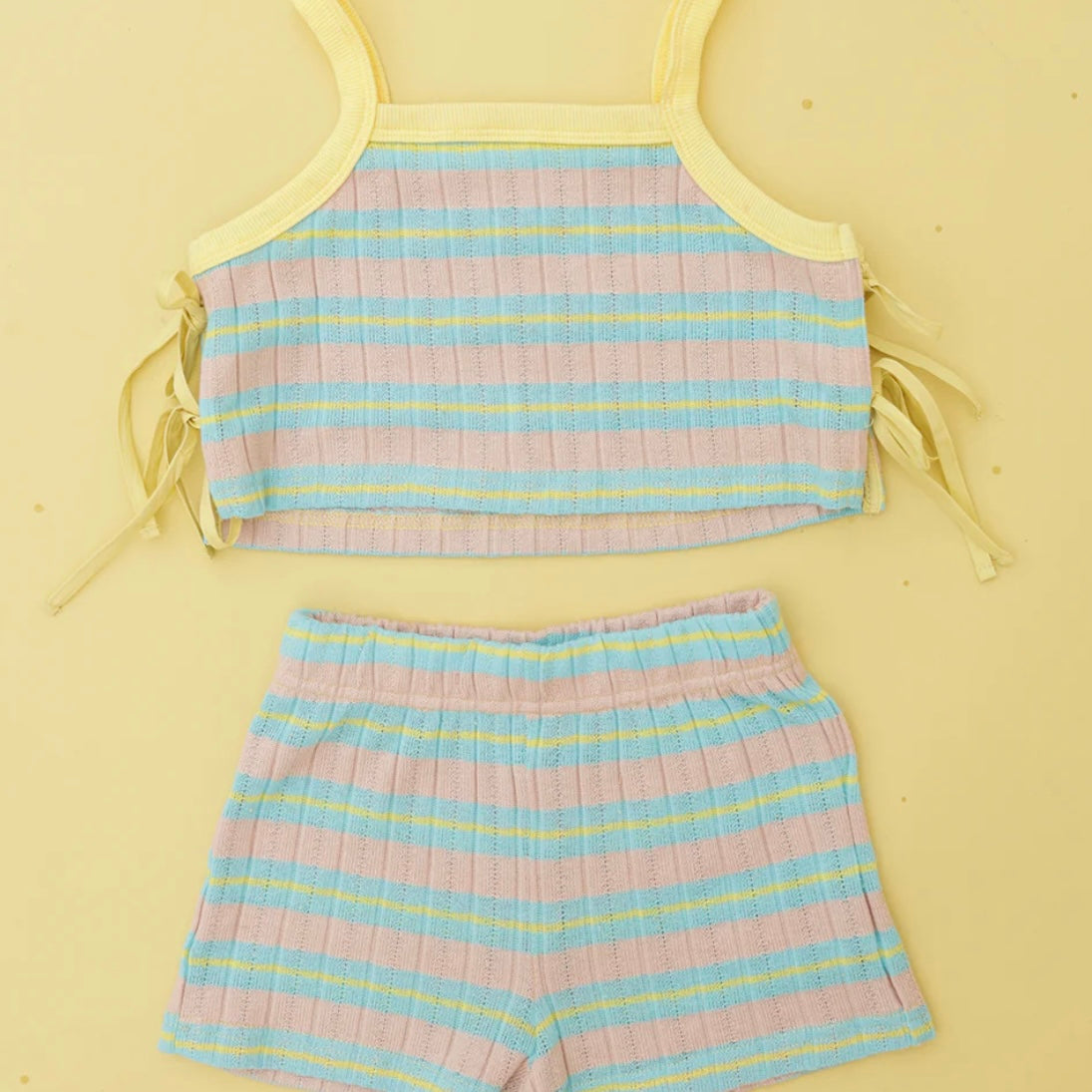 A comfy little throw on, easy to mix & match with! We love a contrast border and it features a sweet little tie up on the side.