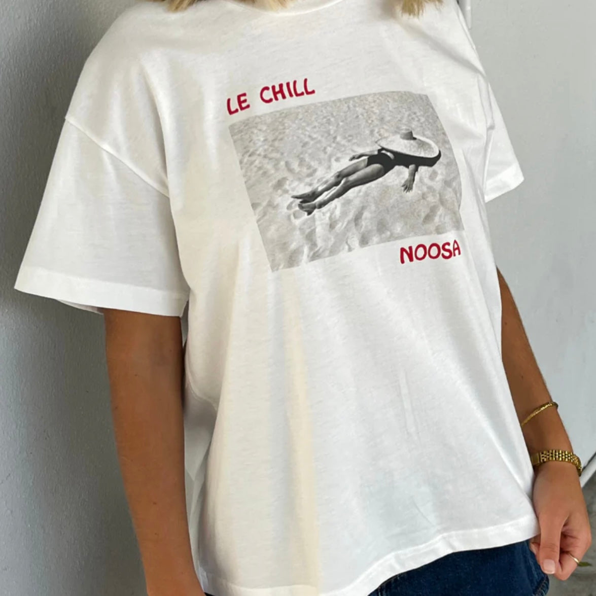 Elevate your beachside style with the Le Chill Boxy Tee - Blanc from Joyeux. Crafted from soft, breathable cotton, this tee features a relaxed boxy fit perfect for laid-back days. This tee embodies effortless beachy vibes and pays homage to the beautiful beach town of Noosa, where one of our boutiques is located. Embrace relaxed elegance with the Le Chill Boxy Tee – your new favourite summer staple.